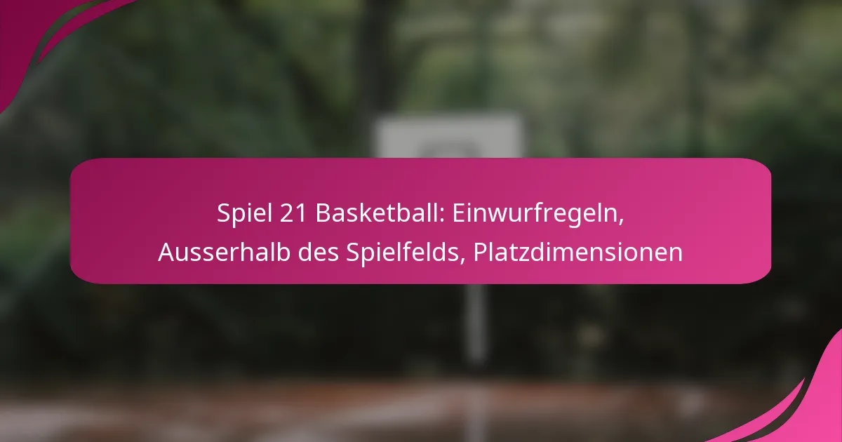 Im Basketballspiel Game 21 bestimmen die Einwurfregeln, wie das Spiel nach dem Aus des Balls fortgesetzt wird. Das Verständnis dieser Regeln ist entscheidend, um den Spielfluss aufrechtzuerhalten und ein faires Spiel zu gewährleisten.
